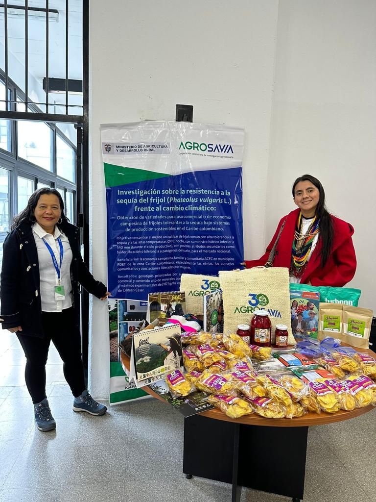 El evento sirvió además para exponer la canasta de productos que han sido objeto de territorialización por las comunidades beneficiarias, tales como frijol biofortificado Agrosavia rojo, batata Aurora y arracacha, entre otros.