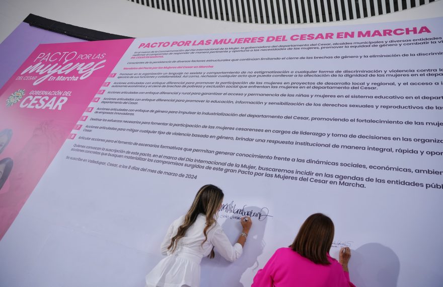 Con la masiva presencia de mujeres, líderes comunitarios y representantes de la sociedad civil, la gobernadora Elvia Milena Sanjuán Dávila firmó este viernes 8 de marzo el gran Pacto por las Mujeres del Cesar en Marcha, como estrategia para la equidad de género y protección de los derechos de esta población en el departamento. “Este […]