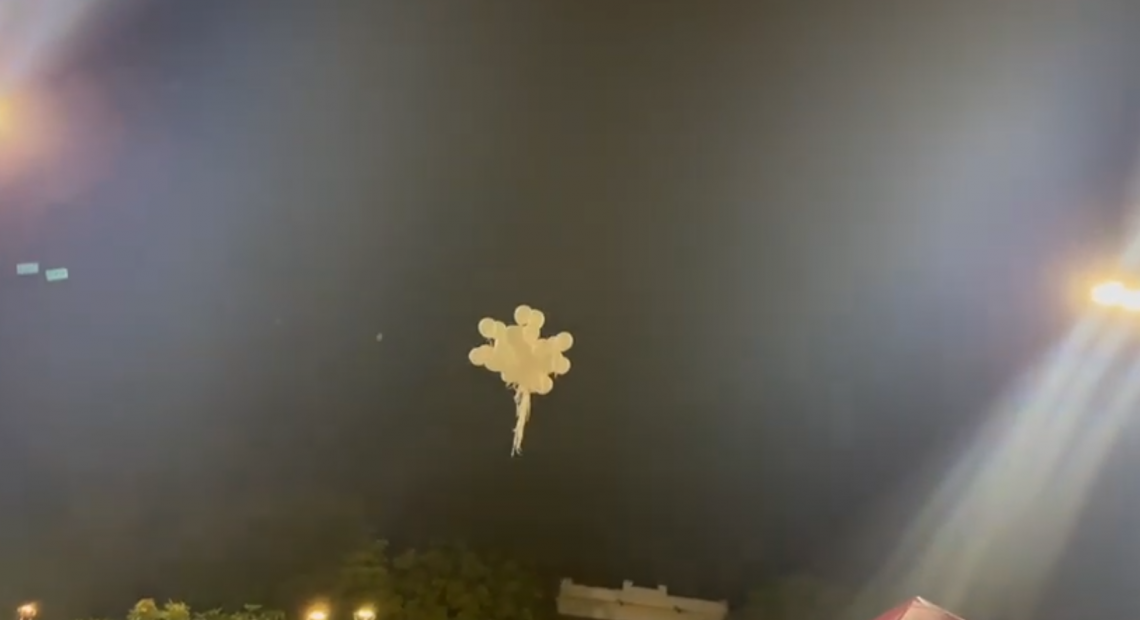 Momento del lanzamiento de globos blancos por las victimas del covid19 por hijo de Jorge Oñate, Jorge Luis Oñate Zuleta en la Plaza Alfonso López de Valledupar durante la instalación e inauguración del 55 Festival de la Leyenda Vallenata en Valledupar. 27 de Abril 2022