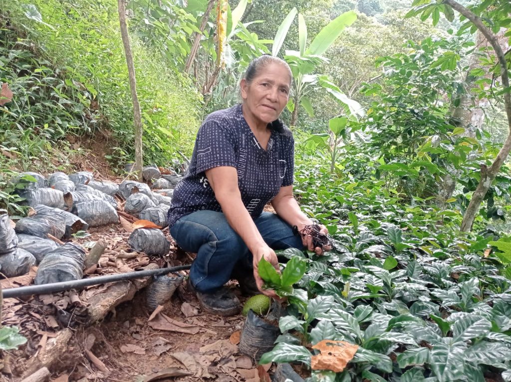 Desde niña Alcira aprendió de sus padres lo necesario para la correcta germinación del grano embrión, el cual es embolsado (empacado) en semilleros, y deben pasar seis meses antes de ser trasplantado al bendito suelo del campo colombiano.