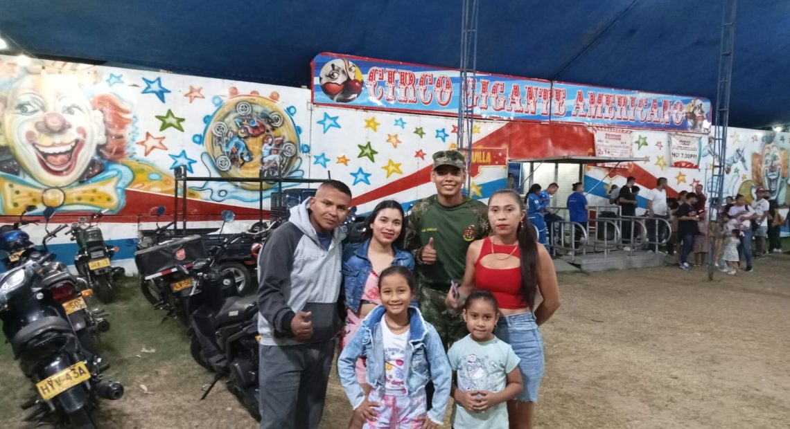 El Circo internacional de América abrió sus puertas a las familias de los soldados que adelantan operaciones en el norte del país, más de 50 niños hijos de oficiales, suboficiales y soldados disfrutaron de acrobacia, magia, malabares y payasos, actividad que se realizó como reconocimiento a la labor que adelantan estos esposos y padres.