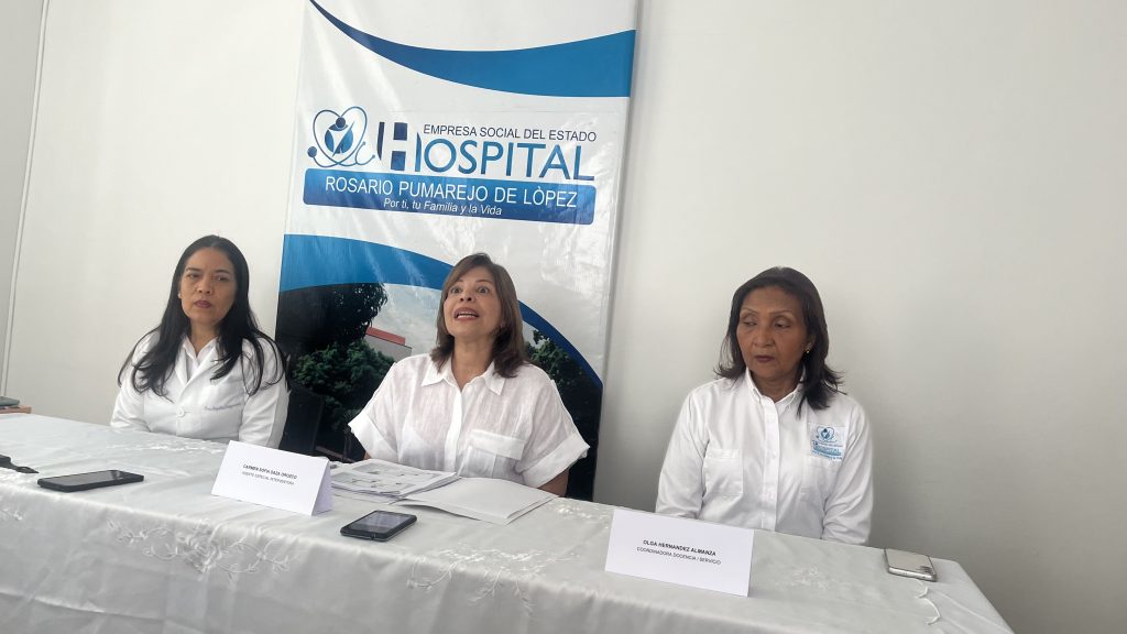 En una rueda de prensa en la sala de juntas del Hospital Rosario Pumarejo de López, la agente especial interventora, Carmen Sofía Daza Orozco, presentó los significativos avances logrados entre abril y junio de 2024. La presentación contó con la participación de Angélica Díaz Granados, subdirectora científica, y Olga Hernández Almanza, coordinadora de docencia y servicios.